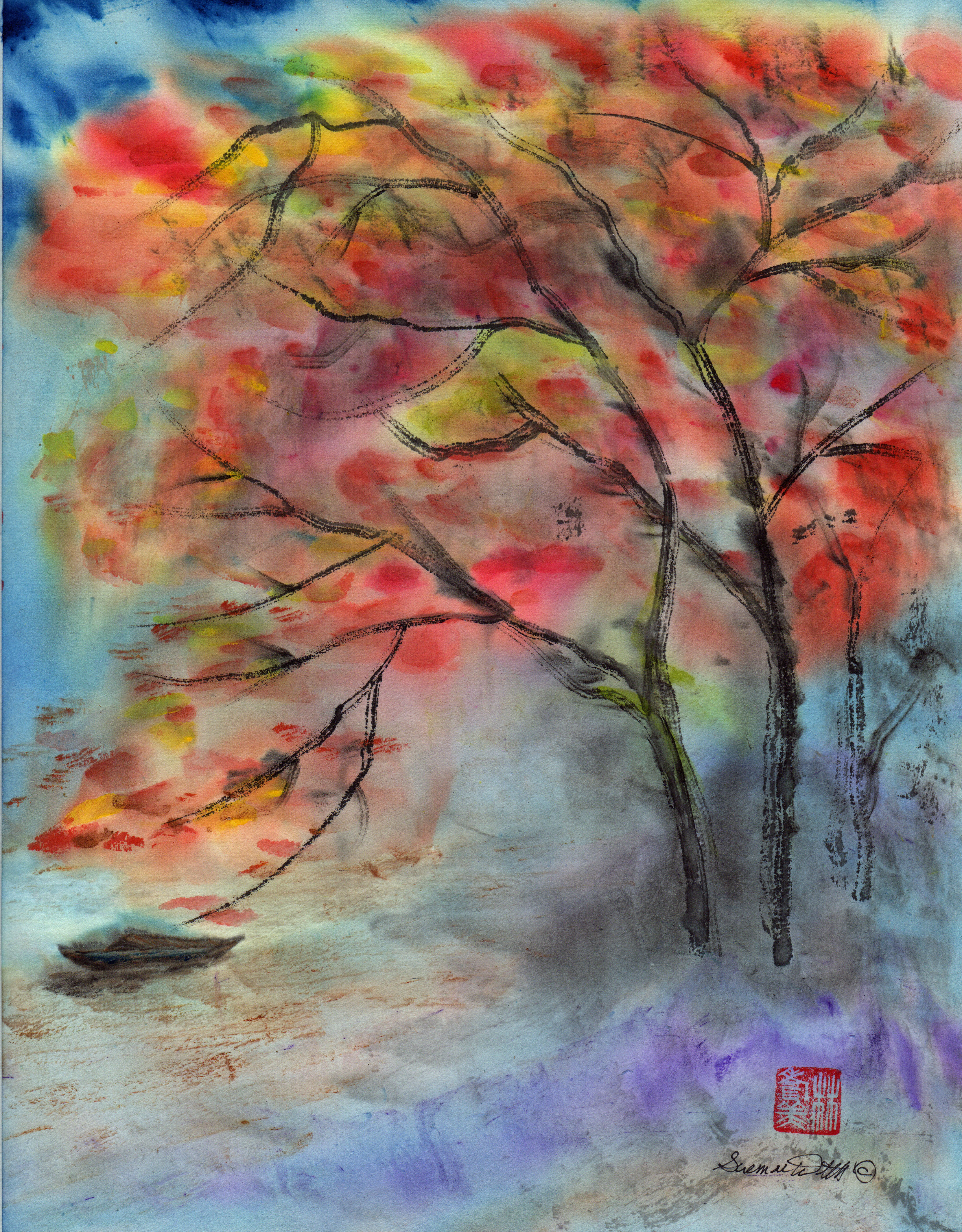 #watercolor #Chinese brush # landscape #gallery # Autumn colors